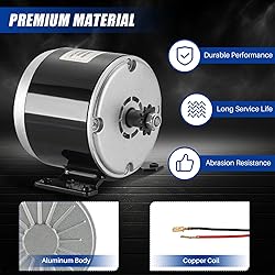 Premium Material: The permanent magnet electric motor features aluminum body and copper coil for durable performance, abrasion resistance and long service life. It operates smoothly and quietly with minimal dynamic loss. Specification: Voltage: 24V DC, Rated Current: 16.5A, Rated Speed: 2800 RPM, Output: 350W, Torque: 0.9Nm. This 24V DC 350W brushed electric motor features low resistance and high work efficiency. It comes with a sprocket for 25H chains and an 8mm shaft for stable power output. Versatile Rotation: This brushed DC motor allows for clockwise or counterclockwise rotation by switching the power cord connection to either the forward or reverse direction, enhancing its adaptability and prolonging its lifespan. Easy Installation: With its straightforward design and pre-drilled holes, you can install the electric motor quickly and effortlessly. Wide Application: Our permanent magnet generator is suitable for electric scooters, e-bikes, wind turbines, lawn mowers, grinders, and small DIY generators. Perfect for a range of mechanical equipment and DIY projects.