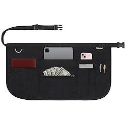 [ Practical & Professional Design ]: Our short black server apron is designed with busy professionals in mind. The convenient buckle closure ensures a secure and adjustable fit, making it perfect for restaurants, cafes, and other fast-paced environments. [ Premium Quality & Durability ]: Crafted from commercial-grade, stain-resistant polyester, this apron is built to last. Double-stitched seams and reinforced stitching ensure long-lasting performance, even in demanding conditions. [ Organized Efficiency ]: Stay organized with 7 strategically placed pockets, including a zippered pocket for securely storing money, menus, receipts, pens, phones, and more, streamlining your workflow. [ Versatile & Comfortable ]: Designed for both men and women, this short half apron provides optimal comfort and freedom of movement. Perfect for servers, bartenders, baristas, teachers, dog walkers, or anyone on their feet. [ Easy Care & Long-Lasting ]: Our apron is machine washable and maintains its shape and color wash after wash. Simply follow the care instructions for hassle-free maintenance. Machine wash with the same colors, do not bleach, tumble dry on low.