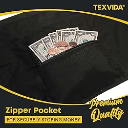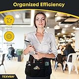 TEXVIDA 7 Pockets Server Apron with Buckle Closure & Zippered Money Pouch – Stain Resistant, Black Waitress Apron