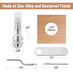 Bates cabinet locks with keys come in a 2-pack, all keyed alike, so you can conveniently use the same key for both locks, streamlining access. Built from durable zinc alloy, these locks offer superior strength and long-lasting security for cabinets, drawers, and storage units. Designed with a 1-1/2" size, these locks are perfect for a variety of cabinets and storage applications, from home to office or industrial settings. Each lock includes two matching keys, making it easy for multiple users to access the same lock while maintaining security. The long cam lock mechanism ensures a tight, secure closure, giving you peace of mind that your belongings are safely locked away.