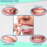 Improving your smile with a realistic solution, with a realistic look and feel The full set is an excellent tool . New upgrade,made of food grade silicone, non-toxic and harmless, can give you the freedom to smile and drink without making you feel any discomfort, reusable temporary smile device Can be used just after a simple cleaning,without waiting for a long time.You'll get a natural and confident smile right away Suitable for Most Occasions:Whether it's a date, a job interview or a party,you can use this teeth denture to help you regain confidence and increase your charm Convenient To Use: Easy for you to clean, you can store them into the box after using.Convenient for you to carry them anywhere you want, saving you much time and energy
