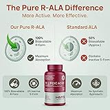 - Our R-Lipoic Acid 300mg supplement helps deliver high-quality, bioavailable R-Alpha Lipoic Acid (R-ALA)—contains no synthetic S-ALA—for powerful support in antioxidant activity, metabolic function, and cellular health. It's crafted to support nerve support, helps enhance skin and liver function, and may help ease occasional nerve pain. It may work at the core of your body’s energy production, supporting vitality and endurance naturally. Formulated to support your well-being, our NSF certified supplement is Non-GMO, vegan, and does not contain dairy, gluten, soy, eggs, nuts, preservatives, or artificial flavors. Made in the USA in an NSF-certified, cGMP-compliant facility, our clean and effective ALA supplement is ideal for anyone seeking an ideal metabolism booster, antioxidant, or nerve support supplement. With easy-to-swallow capsules and a consistently pure formula, our R-Lipoic Acid helps make daily wellness simple. The product may come with either a new or old label, but the formula and ingredients remain unchanged.