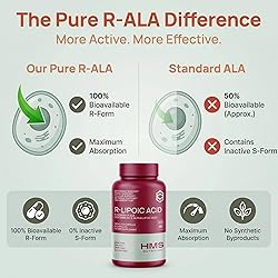 HMS Nutrition Stabilized R-Lipoic Acid 300 mg per Serving — Pure R Alpha Lipoic Acid (R-ALA) High Potency Active R Isomer Antioxidant Nerve & Metabolism Support — NSF Certified Non-GMO Vegan 60Capsule