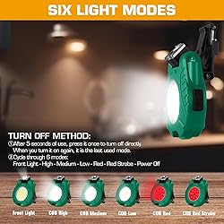 Unique Sensor Mode: Long press the switch for 2 seconds, the indicator light turns red and the front light enters the sensing mode, you can quickly and easily control the switch by using hand movements. The type of sensor system allows for gesture-based control of the device, making it more intuitive and user-friendly, offering a convenient way to interact with the keychain flashlights without needing to touch any buttons Multifunctional: EverBrite light is a great combination of practicality and versatility. It features a 180° adjustable bracket for flexible positioning and clip design allows it to be attached to hats or pockets, while the magnet provides an easy way to attach it to metal surfaces for added convenience. With bottle opener function, it not only a light source but also a handy tool 6 Modes & Memory Function: The mini work light offers 6 modes - Front Light, COB High, Medium, Low, Red and Red Strobe modes, meeting the needs of various situations. The Red mode is particularly useful as a signaling light at night. Lasts about 5 hours in Front Light mode and 10 hours in Low mode. When you turn it on again, it is the last used mode, saving time Mini Portable Rechargeable Light: The small keychain flashlight is easily portable and can fit into your pocket for convenient carrying. The tail and bracket feature a hollow design, allowing it to be hung on a carabiner for hands-free use. Each light comes with a charging cable, can be fully charged in just 1.5 hours Waterproof: Made from durable ABS material, this light is waterproof, corrosion and wear-resistant, suitable for a variety of environments, can be used outdoors, camping, hiking, fishing, and indoors such as bedrooms, study room as a daily lighting needs or emergency lighting. It's an excellent choice for those who require both functionality and durability