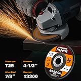 Shawya 10 Pack 60 Grit Flap Disc 4 1/2 in T29 Aluminum Oxide Grinding Wheel Disc for Metal, Wood, Stainless Steel Finishing, Angle Grinder Sanding Disc 7/8" Arbor