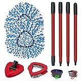 - 【Applicable Model】: Mop heads replacements,mop handle,scrubber mop head and mop base Combo Set ONLY compatible with O-Cedar RinseClean 2-Tank Spin Mop System,🚫𝐍𝐎𝐓 for EasyWring 1-Tank Spin Mop and Bucket.Package include:2 pack microfiber mop head refills,4-section adjustable mop handle,1 scrub brush head,and 1 triangle mop base.(No Bucket)【2 Pack Mop Replace Heads】:Mop heads replacements are made of premium microfiber material,great performance on clean hard floor dust,hair ,dirt,grease,debris and pet fur.Microfiber material for absorb water/coffee stains.Dry /wet use mop heads also can be used for clean glass,wall,ceiling and car.【30-58in Adjustable Sturdy Iron Mop Handle】:Mop handle replacement (mop stick)is made of high-quality iron material,which is more solid and sturdy than the original stainless steel mop handle,spin mop replacement handle was treated with baked red paint process technology to ensures a firm grip during mopping without slip.【Scrubber Mop Head&Triangle Mop Base】:Scrub brush mop head is designed to deep clean bathroom tiles, bathtubs, shower tiles, kitchen floors,sinks,countertops,toilets and narrow spaces.The mop cover is designed with a rounded triangle shape,ensures your furniture stays protected while cleaning.【Effective Hard Floor Cleaning】:The reusable mop refills and mop brush head for Rinse Clean 2-Tank Spin Mop works great on dust,hair,pet fur,scrubber mop head great for cleaning tough stains and stubborn dirt,ideal mop heads replacements for various sealed hardwood floors,such as laminate,vinyl,tile.Great for daily cleaning of home,kitchen and office.