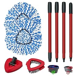 【Applicable Model】: Mop heads replacements,mop handle,scrubber mop head and mop base Combo Set ONLY compatible with O-Cedar RinseClean 2-Tank Spin Mop System,🚫𝐍𝐎𝐓 for Ocedar EasyWring 1-Tank Spin Mop and Bucket.Package includes:2 pack microfiber mop head refills,4-section adjustable mop handle,1 scrub brush head,and 1 triangle mop base.(No Bucket Include) 【2 Pack Mop Replace Heads】:Mop heads replacements are made of premium microfiber material,have a great performance on clean hard floor dust,hair ,dirt,grease,debris and pet fur.Microfiber material for absorb water/coffee stains.Dry /wet use mop heads also can be used for clean glass,wall,ceiling and car. 【30-58in Adjustable Sturdy Iron Mop Handle】:Mop handle replacement (mop stick)is made of high-quality iron material,which is more solid and sturdy than the original stainless steel mop handle,spin mop replacement handle was treated with baked red paint process technology to ensures a firm grip during mopping without slip. 【Scrubber Mop Head&Triangle Mop Base】:Scrub brush mop head is designed to deep clean bathroom tiles, bathtubs, shower tiles, kitchen floors,sinks,countertops,toilets and narrow spaces.The mop cover is designed with a rounded triangle shape,ensures your furniture stays protected while cleaning. 【Effective Hard Floor Cleaning】:The reusable mop refills and mop brush head for Rinse Clean 2-Tank Spin Mop works great on dust,hair,pet fur,scrubber mop head great for cleaning tough stains and stubborn dirt,ideal mop heads replacements for various sealed hardwood floors,such as laminate,vinyl,tile.Great for daily cleaning of home,kitchen and office.