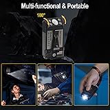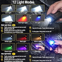 Boruit V30's main light has three light sources. Main white light brightens entire rooms for daily tasks. Red LED preserves night vision & won't spook animals during observation. 365nm UV blacklight detects pet stains and hidden residues. Perfect illumination for any scenario. Two-way clip and magnet can achieve attaches, hangs, or magnetically mounts to metal. Built-in buzzer alerts or deters animals. Features a USB-C port to charge your devices. Great for hiking, camping, reading, ambiance, and safety. Two separate buttons access 12 versatile modes. Main light offers low, medium, high brightness with memory. Features red & purple light for special needs. Side light provides multi-color flashing and SOS warning. Also functions as a portable power bank. Perfect for outdoor, emergency, and daily use. Rechargeable flat flashlights is only 3.3 in long and weighs only 3.5 oz, the aluminum alloy + PC material helps with heat dissipation and durability, making it perfect for EDC gear. Compact size makes it easy to carry and store, fits easily in pockets, travel bags, toolkits, drawers, or car compartments. The V30 blacklight flashlight comes with a strap lanyard, allowing you to wear it on your wrist or hang it on your clothes. This flashlight is perfect for camping, repairs, hiking, or emergencies, and a practical thoughtful gift for adults and kids alike.