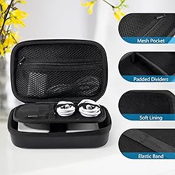 Large Capacity: Portable hard EVA carrying case for organizing small electronics accessories, like MacBoook charger, cables, power bank, USB flash disk, SD card, mouse, earphone, power adapter, etc. External dimension: 8.07*5.31*2.95 in Full Protection: Premium water-resistant hard EVA material exterior and shock absorbing soft lining interior, offer double protection against scratches, impacts, spills, and dust Enough Space: Extra inner mesh pocket and elastic band are designed for managing small electronics and accessories; 2 Cable ties for various cords, like charging cable, USB cords, keeping them well-organized and protected Unique Design: The 3 padded dividers are adjustable and you can design the layouts as you like; Keep all your electronic travel accessories in perfect order Easy to Carry: Lightweight and compact design with quality hand strap and metal D buckle for easily carrying around; Sturdy and smooth double zipper design allows open and close easily