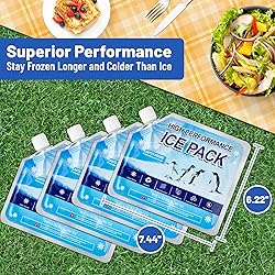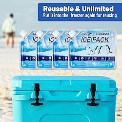 - Omoojee Reusable Ice Packs for Cooler, 4 Pack Freezer Ice Packs for Lunch Boxes, Cooler Ice Packs for Camping Gear, Fishing, Medium