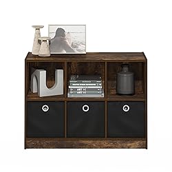 - A simple storage solution with understated style, this Furinno basic 3x2 bookcase storage with bins keeps things tidy and chic in any space. Designed to take organization to the next level and for use anywhere in your home, this stylish organizer can hold small items, pictures, and keepsakes, or accent with the standard sized fabric drawers and storage. The Bookcase is made of CARB-grade composite wood tested for durability and sturdiness. Assembly is easy with provided step-by-step instructions. Care instructions: wipe clean with a clean damped cloth. Avoid using harsh chemicals. Pictures are for illustration purposes. All decor items are not included in this offer. The product is entitled to a 1-year warranty against manufacturer defects. Fits Space, Fits Budget.