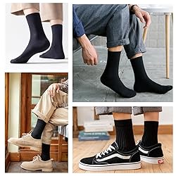 Set: 5 pairs socks for male One Size: fit for US shoe sizes from 5-10 Ankle/High Crew: fit for business suits/shoes, athletic shoes, slippers, and boots, etc. Material: 78% cotton, 18% polyester, and 4% spandex Care Instruction: Hand/machine wash in cold water. Long lasting and air dry only. Do not iron.