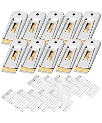 - Bates metal Rrazor blade scraper tool set includes 10 high-quality scrapers, perfect for cleaning and scraping a variety of surfaces, including glass, tiles, and metal.Made from durable stainless steel, these heavy-duty scrapers are built to withstand tough cleaning tasks, providing long-lasting performance.Each tool comes with 100 extra carbon steel blades, ensuring you have plenty of replacements on hand for multiple cleaning or scraping projects.The ergonomic design of the scraper tool provides a comfortable grip, allowing for precise control and reducing hand fatigue during use.Ideal for professional cleaners, DIY enthusiasts, or anyone needing a reliable scraper for removing paint, adhesive, or grime from surfaces, this set offers great value and versatility.