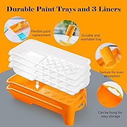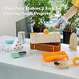 Versatile Kit: This comprehensive set includes 2 inch paint trays 2 pcs, foam paint rollers flat end 10 pcs, paint tray liners 3 pcs, a paint roller frame, foam paint brush 1 inch and 2 inch, a mini 1" painter's tape and a piece of plastic drop cloth 2 Inch Foam Paint Roller Covers: They can be used with most water and oil-based paints, stains, and varnishes. They are made from high density foam with high elasticity to prevent deformation and absorbs paint evenly, which can ensure a smooth and even finish on any surface and won't leave roller lines on surfaces Small foam paint rollers 2 inch of special flat-end design and foam paint brushes are durable, and the sponge head of the brush will not come off the wooden handle. They are designed to get into some small and narrow spaces, corners or edges, which are more suitable for most detail painting job 2 inch paint tray has texture design that can help the foam absorb paint more evenly, plastic paint tray and disposable tray liners are easy to clean and reusable after use. The roller handle is also comfortable to grip Save Your Time and Energy: Masking tape is easy to tear and remove. The plastic drop cloth prevents paint and coatings from spattering and contaminating other items during use, help make your personal house painting job easier and more efficient