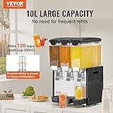 VEVOR Commercial Beverage Dispenser, 3 Tanks 10 L / 10.6 QT Per Tank Juice Dispenser, 440W Stainless Steel Ice Tea Drink Machine with 45°F-54°F Cooling Temperature, for Cold Drink Restaurant Bar Party