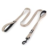 Plutus Pet Double Handle Dog Leash 6ft, Heavy Duty, Reflective Dual Handle Dog Leash for Safety Training, for Medium Large Dogs,2 Handle Leads(Beige)