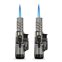 Windproof Jet Flame: The Turbo Jet Flame Torch Lighter produces a robust jet flame up to 2.5 inches in length and reaches a maximum temperature of 2800°F. Its wind-resistant design ensures reliable lighting even in challenging outdoor conditions, perfect for camping and barbecues. Durable Construction: Crafted with a robust zinc alloy top and a high-quality ABS plastic body, this mini torch lighter ensures long-lasting durability and reliable performance. Its sturdy build can withstand the demands of outdoor adventures and regular use. Transparent Fuel Tank: Equipped with a see-through gas tank, our torch lighter allows you to easily monitor the butane level at a glance, so you’ll never be caught off guard during critical tasks like Fireworks or candle lighting. Oversized Flame Adjustment Wheel: The 2 Pack Torch Lighter features an oversized flame adjustment wheel, allowing for easy and precise control of the flame level with your fingers, ensuring optimal performance for any lighting task. Cost-Effective and Refillable: Say goodbye to disposable lighters. Our butane refillable torch lighters provide a sustainable and cost-effective solution for frequent users, making them an essential tool for any household or outdoor adventure. Versatile Uses: This refillable mini torch lighter is perfect for indoor and outdoor activities, including lighting candles, fireworks, grills, gas stoves, ovens, and even camping trips, making it a versatile addition to your toolkit. NOTE: IF THE LIGHTER WON'T STAY LIT, PLEASE TURN UP THE FLAME ADJUSTMENT WHEEL AT THE BOTTOM OF THE LIGHTER UNTIL FLAME STABLE.