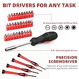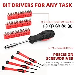 SMALL TOOL KIT: This 58 piece home Tool Set is an essential tool set for daily home project and maintenance like furniture assembly, picture hanging and general purpose repairs, apartment, dorm room, or garage and automotive needs TOOLS BOX LIST: (1) 8 oz Claw Hammer, (30) screwdriver bits, (1) bit driver, (1) bit holder/extension (16) hex keys, (4) precision screwdrivers, (1) slip joint plier, (1) tape measure, (1) utility knife, (1)8" Scissors (1)Hammer Cover (1)Storage box DURABLE& RELIABLE: All the tools are constructed from premium material and precisely manufactured to ensure durability and longevity EASY ORGANIZATION: The Tools come neatly organized in a small hard plastic case to keep all your tools organized and securely stored, small enough to be hidden in closets, your garage or even under the kitchen sink THE PERFECT GIFT: This tool set contains useful tools for any basic household repair, and doubles as the perfect thoughtful gift for any new grad headed to college, or a friend or family member moving into a new apartment or starter home