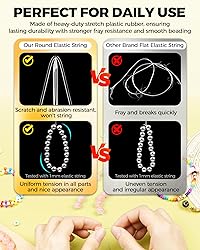 【Clear Stretchy String for Bracelets】Includes 1 x1mm round transparent crystal elastic string cord. Ideal bead string for clay beads, pony beads bracelet making, friendship bracelet beads, seed beads, crystal beads, letter alphabet beads, number beads, glass beads, kandi beads, clear beads and more. 【Premium Elastic Bracelet String】Made of heavy-duty elastic plastic rubber material with superior abrasion and aging resistance to protect against fraying and yellowing from daily use (e.g. sunlight exposure, wet, etc.). No stringy or splinter problems, only a sturdy, fresh and bright appearance for our beading thread even after years of use. 【Uniform Tension Distribution】Our round bracelet elastic strings offer consistent tension distribution when stretched compared to flat elastic string, helping maintain the shape and structure of your beaded creations without over-sagging. Decent elasticity allows for easy wearing and removal of bracelets, anklets, etc, resuming its original length despite numerous stretches or knots with no thinning or losing shape. 【Easy to Tie Knots & Hide】Our clear elastic beading string boasts crystal clarity, smoothly threads through beads, ties sturdy knots and discreetly hides in beads - no needles or glues needed. Whether you're crafting with colorful glass/clay beads for bracelets making or delicate crystal beads for jewelry making, our transparent necklace bracelets making string blends in seamlessly for enhanced overall aesthetics of your beaded jewelry. 【Wide Applications】Perfect clear elastic string for bracelets making, friendship bracelet, Kandi bracelet, necklace, anklets, earrings and DIY craft projects such as bead weaving, knotting, jewelry making, etc. Suitable clear string for hanging decorations, nice elastic thread for sewing buttons and other handmade jobs and ideal gift for adults, your family, friends and so on.