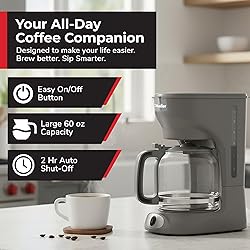 Generous Capacity & Durable Design: Glass carafe with 60oz capacity, this allows you to brew a large amount of coffee up to 12 full cups, or simply choose 2 or 4 at a time. It has an easy-grip handle for comfortable, drip-free pouring. The dishwasher safe carafe coffee pot is made of high-quality, non-porous borosilicate glass, which won’t absorb odors, while its superb heat-resistance will keep your coffee hotter for Ionger. Reusable Eco-Filter: Our permanent filter technology not only enriches the flavor of your coffee but also saves you the cost and waste of disposable filters. Easy to remove and clean, however filter paper can still be used if you prefer. Savor the flavor in every refill. Improved Keep Warm Safety: Our keep-warm function maintains your coffee's temperature, ensuring your last cup is as warm as the first. After your machine has brewed a fresh carafe of coffee, the warming plate will retain heat, and then will automatically turn off after 2 hours. Perfect for busy mornings or leisurely brunches. Thoughtful Features: This coffee machine comes with a non-drip carafe and non-slip feet for stability, ensuring your brewing experience is clean and safe. Superior Quality - We are here to offer you only the best quality products designed to make your life easier. If you need any help, please feel free to contact us.