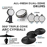 World-Class Sound - Pro-level 8-piece kit with dual-zone all-mesh heads, Active Magnetic hi-hat control, state-of-the-art touchscreen drum module running BFD sound engine with 75 kits No Compromise Acoustic Drum Set Configuration - 8" kick (double bass compatible), dual-zone 12" snare, (2)8" and (1)10" toms, 360° cymbals - 2x12" crashes, 14" ride, 12" active magnetic hi-hat controller Advanced Drum Module - Unprecedented realism of sound from the multi-core module, driven by the legendary BFD drum engine, controlled via an intuitive 7" touch screen interface Unlimited User Kits - Multi-core processor with over 25GB of content; 75 kits, 370+ kit pieces, 800+ articulations and 144,000+ individual samples you can apply FX to for a true acoustic drum sound 360° ARC Cymbals - Triple-zoned 14" ride and two 12" crashes with responsive 360° playing surface with natural sway, dual-edge sensor and incredible expressiveness, acoustic-arms compatible Hi-Hat Precision - Active magnetic stand-mounted design, unmatched accuracy of capturing hi-hat playing techniques; triple-zone 360° playing surface, actively powered by the Core Drum Module Diverse Sound Collections - Includes 4 libraries - Alesis Core Acoustic, BFD Dark Farm, Alesis Core Electronic and BFD Percussion; multi-layered factory content to top up the 75 factory kits Drumming Mastery Simplified - Get exclusive 90-day Drumeo subscription and access more than 6000 songs and interactive lessons from over 200 drummers *Hi-Hat Stand and Kick Pedal Sold Separately