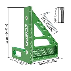 【Upgrade Multi-function Design】: It is a 3D carpenters square with measuring capabilities and drill bit sizing options designed to help you quickly and accurately measure or mark angles from 0 to 90 degrees. Has a 6-hole design for drawing angles, it includes preset angles of 22.5°, 30°, 45°, 60°, 67.5° and 75°. At the same time, we also have a pin shaft for you to insert the pin making it easy to draw angles accurately. 【Light & Portable】: The square ruler is easy to disassemble for portability, you screw in the screws and it becomes a 3D measuring tool. When not needed, remove the screws with a hex wrench to get a square ruler and a triangular carpenter's ruler, easy to use. 【High Accurate】: The 3D multi-angle measuring ruler is able to accurately measure and mark various dimensions, especially for accurately marking cut lines and getting the same line spacing each cut, thus improving the accuracy and reliability of the work and making the marking operation more accurate. 【Strong & Durable】: The square ruler is made of high-quality aluminum alloy and is anodized for a smooth surface and bright color, ensuring user safety and durability. The scale is clear and easy to read, and is marked with ink UV printing for extremely high visibility and durability, ensuring clear and long-lasting measurements. It is one of the indispensable tools in your tool kit. 【Widely Uses】: Suitable for DIY, carpentry engineers, construction engineers and so on, which can put in your apron pocket and improve work efficiency. You will get 1 x angle pin, 1 x multi-angle measuring ruler, 2 x screws and 1 x wrench. It will be ideal for you.