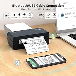 - Gloryang 4x6 Bluetooth Thermal Shipping Label Printer – Wireless, Fast, and Compact for Small Business and Home Use The Gloryang Bluetooth thermal printer is a compact and lightweight solution, designed to fit seamlessly into your home or business workspace. Its advanced thermal technology delivers sharp 203DPI prints at high speeds of 150mm/s, making it the perfect label printer for shipping labels, product tags, storage labels, thank-you notes, and custom logos. This wireless printer supports multiple devices, including iOS, Android, laptops, Macs, and Chromebooks, ensuring easy connectivity through Bluetooth. Compatible with popular platforms like Amazon, UPS, and Shopify, the printer streamlines your workflow and simplifies label printing for small business packages. With support for various label sizes from 1.57" to 4.1", including the standard 4x6 format, the Gloryang shipping label printer offers flexibility for any project. Its inkless thermal printing technology eliminates the need for costly ink or toner, saving you time and money. Easy to set up and operate, this phone printer is perfect for business owners looking for a hassle-free, portable printer to keep up with daily tasks.