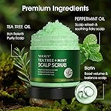 【SCALP DETOX SCRUB SHAMPOO】Our tea tree scalp scrub can effectively remove product buildup, impurities,dead skin cells and relieve itchy,can balances a dry, flaky and oily scalp for long-term scalp health, keeping the scalp clean and breathable 【PLANT-BASED FORMULAS】Infused with tea tree essential oil, peppermint oil, biotin, sea salt, honeysuckle flower extract with a refreshing scent that lasts. This scalp exfoliator scrub with natural formula make it a soothing treatment for itchy scalp 【ITCHY RELIEVE & STRENGTHEN HAIR ROOTS】Made with premium ingredients that will improve scalp health, Our hair scrub shampoo with tea tree essential oil, and itchy relieve and strengthen hair roots. Peppermint oil can soothes itchy scalp and moisturize the scalp 【SAFE FOR ALL HAIR TYPES】Our 2-in-1 hair care scrub shampoo are formulated with 100% vegan, sulfate free, silicone free, paraben free, cruelty free. Using our scalp scrub once a week will help to deliver a deep and exfoliating clean, no matter your hair type 【SILICONE SCALP MASSAGER】It come with Scalp exfoliator scrub shampoo with fresh-smelling formula and a silicone scalp massager. Make sure hair is thoroughly wet,apply scalp scrub on your hair roots and delicately massage with fingertips, then massage with scalp massager. Enjoy scalp spa care and priming your scalp relief at home