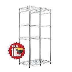 - Experience the convenience of easy access to your items without the need to unstack them, thanks to our innovative bin rack. This storage solution features three convenient slide-in slots and two shelves, and is designed to hold a maximum weight of 250 pounds (50 pounds per bin). The rack's compact dimensions, measuring 34.25 inches in width, 21.5 inches in depth, and 68 inches in height, make it a practical addition to any space. Crafted from industrial-grade, zinc-coated steel, this NSF-Certified (2023) wire rack ensures durability and longevity. It's an ideal choice for organizing and storing your sports gear, seasonal clothing, winter jackets, holiday decorations, and more efficiently. Key Features: Includes bins Accommodates five 27-gallon storage bins Vertical storage design for easier item access Maximum weight capacity of 250 pounds (50 pounds per storage bin) Certified under NSF/ANSI Standard 2 for Food Equipment, suitable for use in dry environments Zinc plating offers enhanced rust protection