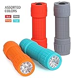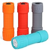 The FASTPRO flashlight contains 4-pack super bright LED flashlight, which is the perfect for everyday use. Featuring a compact design, these flashlights are constructed of High impact ABS casing and comes in an assortment of colors, including teal, orange, grey, red. Each flashlight is equipped with 9-LED bulbs, each flashlight provides 30 lumens of light output. Comfortable rubber coating handle, compact, provide with with smooth touch feeling. 12-piece AAA heavy duty batteries are Included and pre-installed inside each torches, please turn off the tail cap and take-off the insulated film before use.