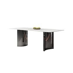 This table offers versatility. It can be used as a dining table, office desk, or even a conference table. You can use it for any purpose that best suits your needs, making it a great value for money. The texture of natural slate, the hardness and luster of metal, and the smooth and simple line design highlight the taste of life. The sturdy chassis increases the contact area with the ground, making it stable and load-bearing without shaking. Product dimensions: length 140cm/55.11in, width 80cm/31.49in, height 75cm/29.52in. The thickened multi-layer countertop structure can safely carry the dining time. One can decide to use this simple yet elegant table as a kitchen table or computer desk.