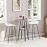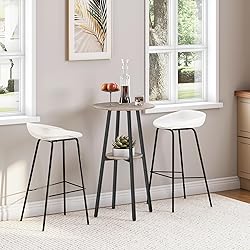Capacious Storage Table: Overall size: 21.7"L x 21.7"W x 37.4"H. The 2-tier design allows you to enjoy the visible storage function of this round bar table while the open shelves make everything more accessible Stable High Top Bar Table: Quality panels, thick metal frame plus the middle cross support make this round pub table durable. The overall trapezoidal structure can balance the stress of 4 legs and ensures the load ability of top 120 lb and of the middle 44 lb Intimate Dining Table: Your concerns are always our considerations. The round top with smooth edge frees you from scratches. With 4 adjustable feet, this pub dining table can stand stable on different surfaces All-Match Modern Bar Table: Place this bistro table in the living room, meeting room or bar with wine and cups and savor the beauty of life with cherished companions. The collision of rustic brown and calm black creates a randomly arranged aesthetic feeling Easy to Assemble: This pub table only takes you a few minutes to assemble according to user’s manual. The clear structure is easy to install and clean. Integrating practicality, aesthetics, and safety into one body