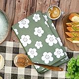 KAF Home Haven Kitchen Tea Towel - Set of 2 Quick Drying Microfiber Cloth Towels - 18 x 30 - Green Retro Floral