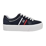 The Tommy Hilfiger Badria women's lace up platform sneaker is stylish yet comfortable. The branded logo hardware and signature ribbon will add a touch of sporty glamour to almost any look and will be a great addition to your wardrobe. It is fun to dress it up or down to complete any look! Round Toe ; Lace-Up Closure Man Made Upper