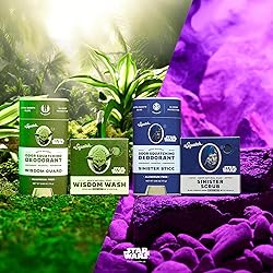 - Awaken the Force within with these natural bar soaps and deodorants, inspired by the wisdom of Master Yoda and the might of the Emperor Palpatine. Whether you're facing the trials of the Jedi or commanding the Empire, this 6-pack will give you the strength and confidence to conquer any challenge in your galaxy. Light Side: Let the Force guide your self-care routine. Inspired by the timeless wisdom and serenity of Master Yoda, the herbaceous scent of Lotus Leaf will calm your mind and clear your thoughts. Dark Side: Step into the shadows of the galaxy and embrace the full force of the Dark Side with Palpatine’s Dark Essence Duo, featuring the electrifying scents of Sinister Scrub and Sinister Sticc.