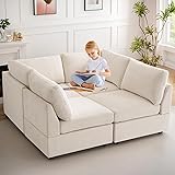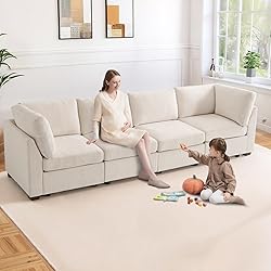 - WARM HARBOR Modular Sectional Sofa with Movable Ottoman, 123Inch 4 Seat Modern Corduroy Sofa Set, Convertible L Shaped Couch for Living Room and Office, Beige