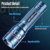 Powerful Rechargeable Flashlights: RECHOO G1000 flashlights high lumens with an upgraded LED chip and tactical switch design, offer 3 lighting modes (high, medium, strobe) which are ideal for daily use or emergencies; No need to cycle through modes too many times to switch modes; The all-in-one design of the flash light also eliminates the hassle of frequent battery replacements; Plus, easily zoom from a wide to a narrow beam by pulling out the flashlight head; Illuminate anywhere with ease; Long-Lasting Type-C Rechargeable Flashlights: The built-in high-capacity rechargeable battery of the flashlight ensures a prolonged runtime; Simply use the included Type-C charging cable to connect the rechargeable flashlight to any USB power source, such as your laptop, power bank, or car charger, and enjoy a quick and convenient recharge. Say goodbye to disposable batteries; Portable Tactical Flashlight: Our small flashlight's compact design makes it easy to carry wherever you go; This flashlights high lumens rechargeable is sturdy and lightweight enough to fit in your pocket backpack or glove compartment, and you'll always have reliable lighting at your fingertips; It's the perfect edc flashlight for camping, home, hiking, emergencies, or everyday use (Size: 4.72''D* 1.25''W, Weight:0.23lb); Sturdy & Waterproof LED Flashlight: Crafted with high-quality military materials, our small flashlight is built to satisfy the needs of everyday use; IP65 waterproof technology and seal design enable this super bright flashlight to be used in all bad weather; Whether you're exploring the outdoors or handling household tasks, rest assured that our flashlights for emergencies are up to the challenge; It's your dependable source of light whenever you need it; Excellent After-Sales Service: The excellent after-sales service will be provided for all RECHOO products; If you have any problems with our flashlight, please feel free to contact us; We'll reply to you within 24 hours.;