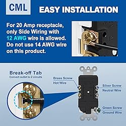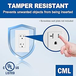 Tamper Resistant: Prevents insertion of foreign objects and protects your children from electrical injuries High Quality: High-impact resistant polycarbonate thermoplastic face and back body for durability. Durable brass contacts provide superior plug retention Easy Installation: Accommodates back push-in and side terminal wiring for easy installation. Break-off plaster ears for best flush alignment. Break-off tabs allow easy two-circuit conversion Compact Design: Shallow dimensions allow for maximum wiring space in a standard electrical box with other outlets or switches UL Listed: Perfect for both residential and commercial spaces, including homes, apartments, condos, hotels, restaurants etc.