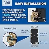 CML 20 Amp Decorator Receptacle Outlet with Tamper Resistant (TR), 100 Pack Standard Electrical Wall Outlets, 20A/125V, UL Listed, White