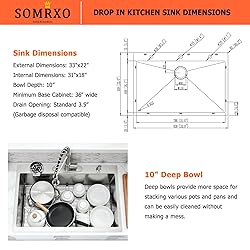 SOMRXO 33×22 Drop In Kitchen Sink with Faucet Combo - Stainless Steel Kitchen Sink Drop In with Cup Washer, 9 Inch Deep Single Bowl Kitchen Sinks and Faucets Combo Set