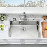Spacious & Stylish Single Bowl Design:This 33 inch drop in kitchen sink offers ample space for large cookware. The matte black stainless steel finish adds modern elegance, complementing any kitchen style Durable Stainless Steel Build:Crafted from high-quality stainless steel, it resists corrosion and scratches, perfect for busy kitchens. The 33-inch size ensures durability for all kitchen tasks Functional Faucet & Cup Washer Combo:Includes a faucet and cup washer combo for precise water flow and easy cleaning of cups. Enhances functionality without needing extra accessories Easy Top-Mount Installation:The top-mount design allows easy drop-in installation, ideal for renovations or new builds. Clear instructions make it DIY-friendly for all skill levels Hygienic & Easy to Clean:The single bowl and stainless steel design make cleaning effortless. Wipe with mild detergent and a soft cloth for a spotless, hygienic workspace