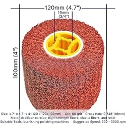 - Specifications 【Size】: 4.7" x 4.7" x 4"(120 x 120 x 100mm) 【Cross Hole】: 0.748"(19mm) 【Material】: silicon carbide, high-strength fibers, elastic fibers, and resin 【Product Quantity】: 2 pcs 【Suitable Tools】: burnishing polishing machines 【Suggested Speed】: 600 - 3000 rpm 【Grit】: 60 grit 【Product Weight】: 1.32lbs 【Package Weight】: 2.65lbs