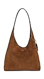 - Suede and grain leather Inside snap pocket Magnetic snap closure Handle with 10 1/2" drop 11" (L) x 11" (H) x 3 1/4" (W)