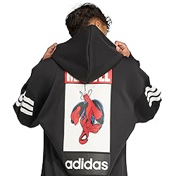 - Spider-Man takes center stage on this adidas hoodie, blending superhero style with everyday functionality. Designed in a regular fit, it offers a balanced silhouette that's neither tight nor loose. The soft cotton-blend fleece delivers warmth and a cozy feel during downtime or travel. A kangaroo pocket provides a convenient spot to keep small essentials within reach. Finished with a hood for added coverage and comfort, this pullover is crafted from 75% cotton and 25% recycled polyester.