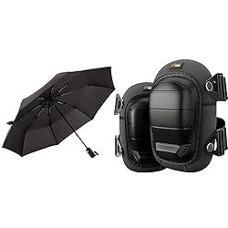 2 ITEM BUNDLE: Umbrella, One Size, Black and Knee Pads, One Size, Black HEAVY DUTY WIND RESISTANCE AND UV PROTECTION TESTED: the Gorilla Grip Umbrella is built for all weather durability; constructed with 8 reinforced fiberglass ribs and a tear-resistant canopy, the umbrella can tackle high winds without bending or snapping; windproof up to gusts of 23 mph; rust resistant for long lasting use, dry completely before storing; provides protection from harmful UV rays up to 20 UPF COMPACT AND LIGHTWEIGHT: umbrella canopy is 42 inches wide when fully expanded for maximum coverage, and collapses down to 11.5 inches, so the umbrella travel size can easily fit inside backpacks, purses and other carry bags; plus this travel compact umbrella is so lightweight at only .9lbs; perfect for on the go; includes a convenient carry pouch SLIP-RESISTANT RUBBER FACE WITH RAISED LEDGE: pads feature a rubber face that helps increase slip resistance on surfaces while you work; the face features a specially designed raised ledge to help provide extra stability and support 3 LAYERS OF CUSHION PADDING: ultra comfortable 3 layer design with outer layer constructed from hard resilient rubber; middle EVA foam layer helps absorb shock and offers added protection to your knees; neoprene backing layer helps comfortably secure pad to the knee