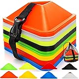 Tlence 48 Pack Triangle Soccer Cones, Flexible Agility Cones with Carry Bag and Strap, Sports Drill Cones for Training, Plastic Traffic Marker Cones for Football Basketball Coaching, 8 Colors