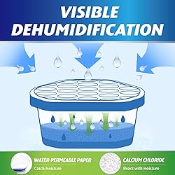 EFFICIENT MOISTURE REMOVAL: Ksend safe moisture absorbers effectively eliminate excess moisture in the air and maintain a comfortable room environment by utilizing large spherical calcium chloride particles. These particles expand the contact area with the air, expediting the dehumidification process. LEAKPROOF DESIGN: Ksend moisture absorbers for rooms are equipped with a unique moisture-locking paper design. This innovative feature ensures that even if the boxes are accidentally overturned, the collected water will remain securely contained. You can confidently place them anywhere without worrying about water leakage. COMPACT SIZE: Ksend moisture remover boxes are designed to be compact, allowing for easy placement in various areas of your home. Their space-saving design ensures they can fit seamlessly into any corner, shelf, or cabinet. The compact size of Ksend moisture absorbers makes them convenient and versatile for use in any room or space. EASY TO USE: Ksend odor absorbers for homes can be easily operated in just 3 simple steps. First, remove the mesh lid, then peel off the protective aluminum foil film, and finally, replace the lid on the box. Once completed, you can conveniently place the box wherever needed. Enjoy a fresh and dry indoor environment in no time! HOW THEY FUNCTION: Ksend moisture absorbers for bathrooms contain high-quality calcium chloride particles. Upon contact with moisture, these particles gradually agglomerate and liquefy. The resulting liquid then accumulates inside the box. Please allow some time for the process to take effect, as it may require patience.