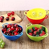 Package Offering More: each package includes 4 mini colanders to accommodate your rinsing, draining, and straining needs; Our mini colanders come in 4 different vibrant colors: green, red, blue and lemon yellow; Cook with comfort and convenience with a whole set of reliable kitchen tools right at your disposal Compact and Suitable: each mini colander measures about 7.5 x 6 x 3 inches, a compact size for small kitchens or limited storage space; Despite their small size, these colanders hold a surprisingly large amount of food, making them ideal for day to day cooking tasks Designed for Comfort and Convenience: our mini colanders feature double handles for easy lifting, shaking, and pouring; This handle design provides a comfortable and secure grip, making it a pleasure to use in a busy kitchen setting; The small holes allow water to quickly flow away from food, allowing you to easily drain noodles or wash fruits and vegetables while preventing food from spilling out Reliable Plastic Material: made from durable and hard wearing plastic, these mini colanders offer extended longevity, resisting wear, tear, and heat; Their durable construction ensures they can deal with high-temperature steam, hot water, and a wide range of food substances obsessively Widely Applied: the mini colanders are widely applicable in food preparation such as washing fruits and vegetables, rinsing beans, or draining pasta; Their compact size makes them exceptionally versatile tools in many cooking areas