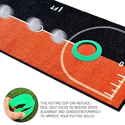 【Perfect golf putting mat】 The 1.3ft X 10ft putting green is the ideal practice mat to improve your putting skill. It's very friendly to both right-handers and left-handers. The numbers on the surface help you to practice from different distance to control your putting accuracy 【Premium Putting Mat】 Professional 10 x 1.3ft putting training mat developed to accurately replicate a medium-to-fast-green. Multiple visual aids for body and putter alignment, stroke amplitude and eye positioning providing muscle memory and mental mapping solutions 【Advanced Alignment Markings】 Equipped with clear alignment guides and distance markers, the putting mat helps players improve their aim and distance control. Perfect for golfers who want to fine-tune their putting mechanics,, 【Golf Training Aid】 Designed to replicate real green conditions, this golf mat provides an authentic putting experience. Golf hitting mat smooth surface ensures a consistent roll, helping golfers enhance their accuracy and confidence!! 【Portable and Lightweight】 Easy to roll up and carry, this golf putting mat is designed for on-the-go practice. Whether you’re at home, in the office, or outdoors, it provides a convenient way to work on your putting skills!! 【Perfect for All Skill Levels】 Whether you're a beginner looking to learn the basics or an experienced golfer fine-tuning your game, this golf chipping mat is versatile enough to challenge players at any level,