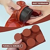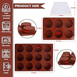 - Specifications: Material: Silicone Color:Brick red Quantity: 3 Pack Package Includes: 1 x 12-Cavity Silicone Mold 2 x 6-Cavity Chocolate Molds 2 x Spatula Our mini cake molds are made of food-grade silicone, which is soft and flexible, not easy to deform and can still maintain its original shape after multiple uses. Due to the flexibility, please place a cookie tray underneath the mold for easy transfer before pouring in the ingredients. So Fun & Easy Our cake puck molds are easy to use, there are many fun ways to use them, you can use your imagination for DIY decorations according to the theme of the party. Note: 1. Please clean the silicone mold in boiling water before use. 2. Do not let the mold empty when baking. If the food material is not enough, please fill the empty cavities with water. 3. After baking, to achieve the better effect, it is recommended to let the silicone mold cool for about 10-15 minutes before releasing. 4. Silicone molds are flexible, please put a tray underneath before use, and then pour in recipes or water afterwards.
